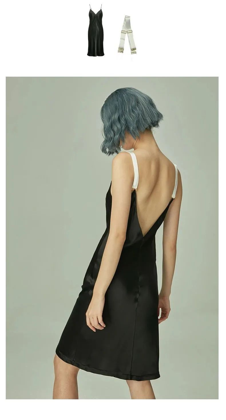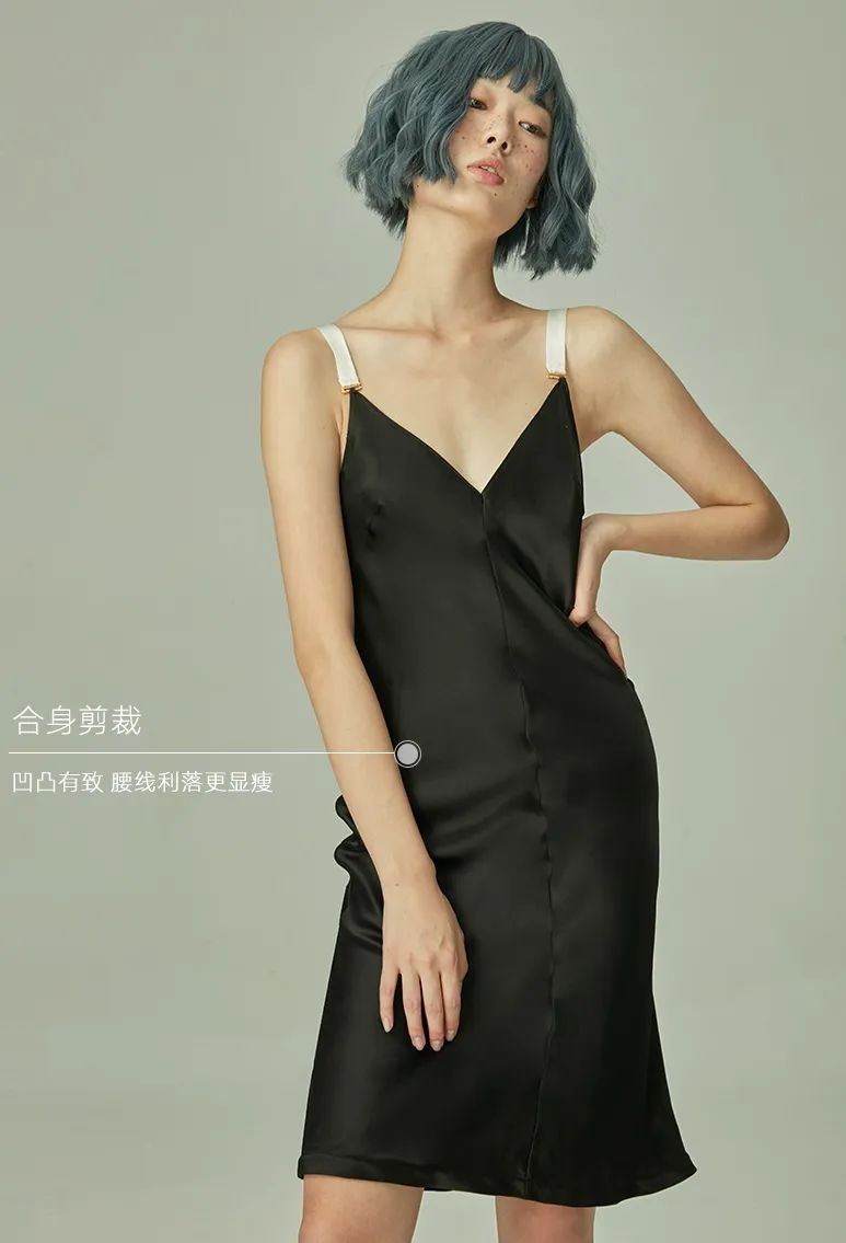 黑色睡裙+白宽肩带