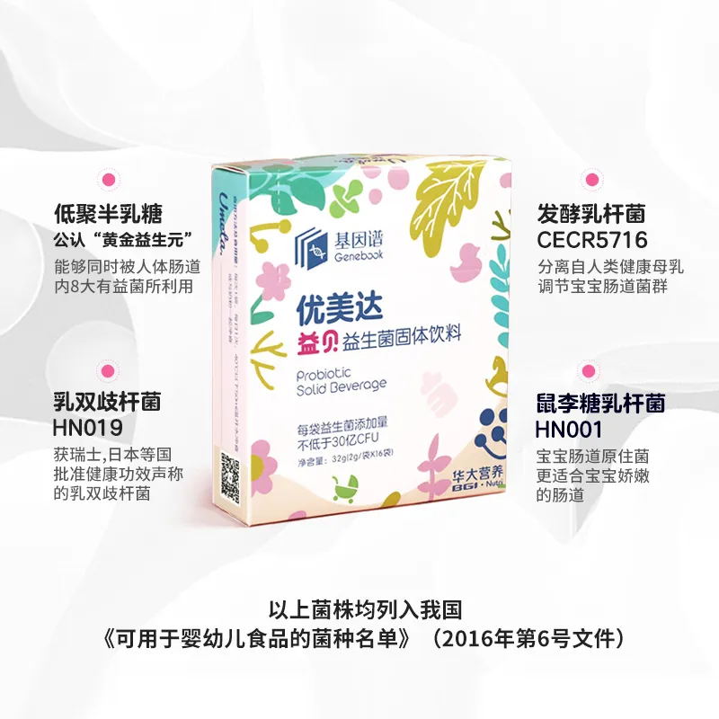 当然,最重要的是选择一款适合宝宝的益生菌,比如华大基因研制的优美达益贝-婴幼儿益生菌。