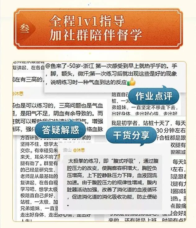 助教1V1解答动作要领,监督大家及时打卡练习。
