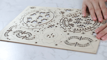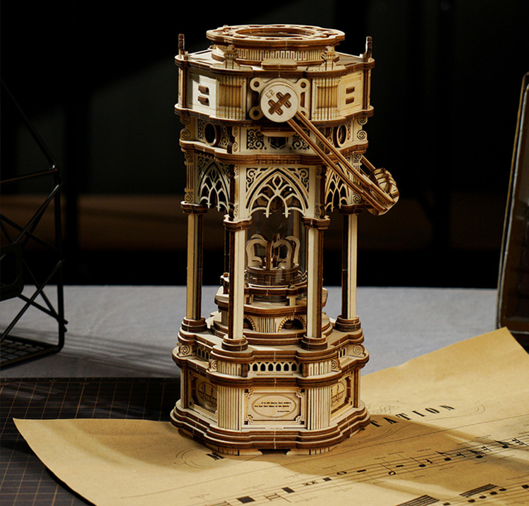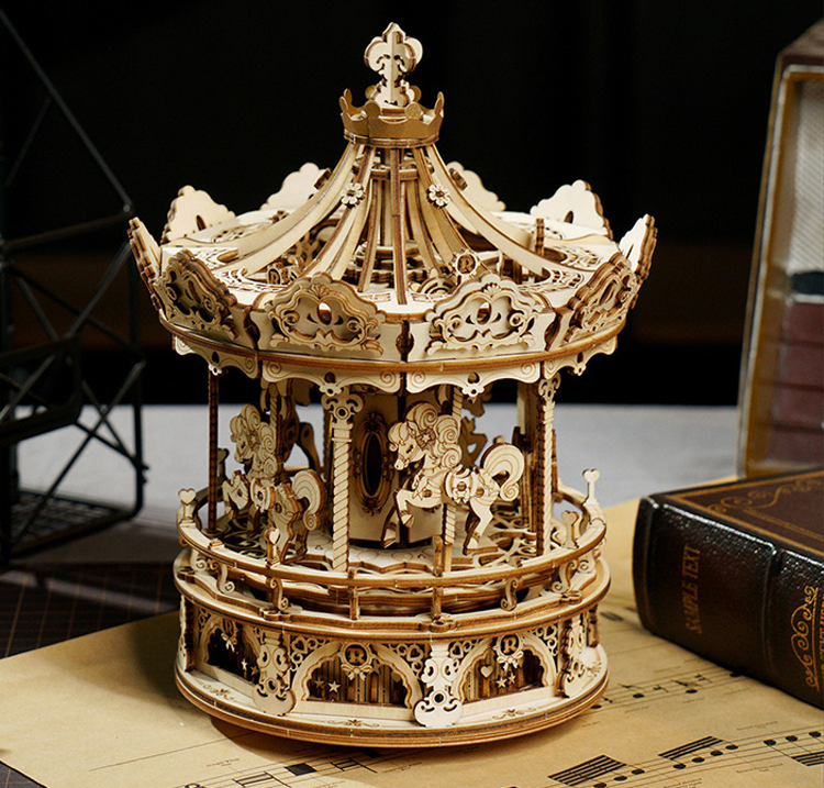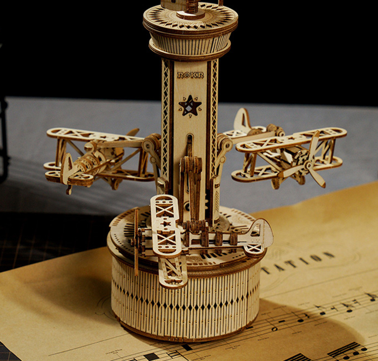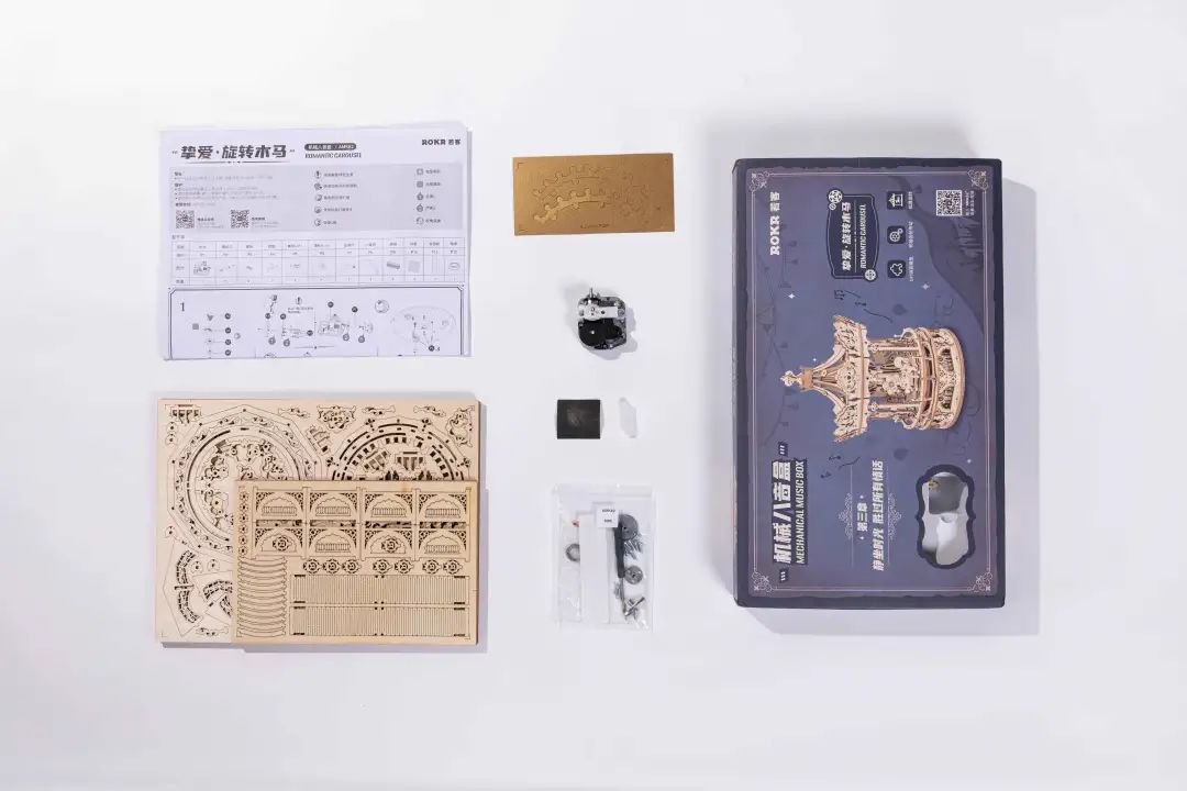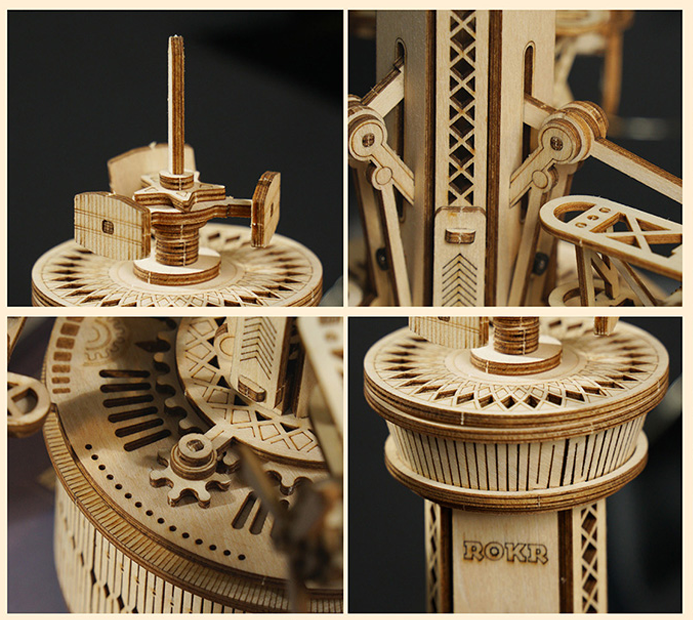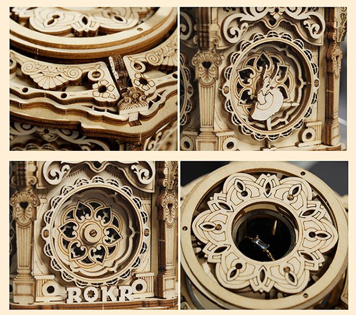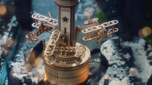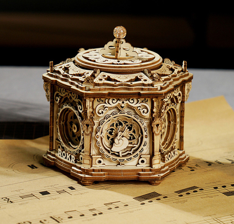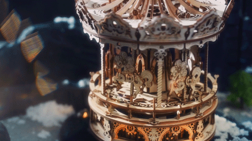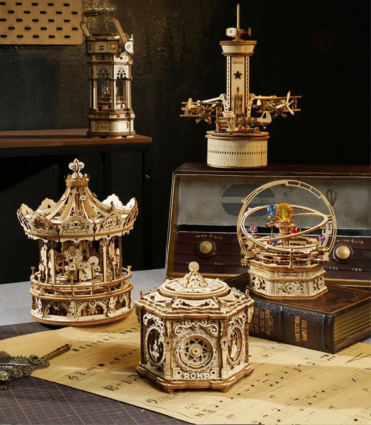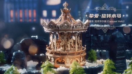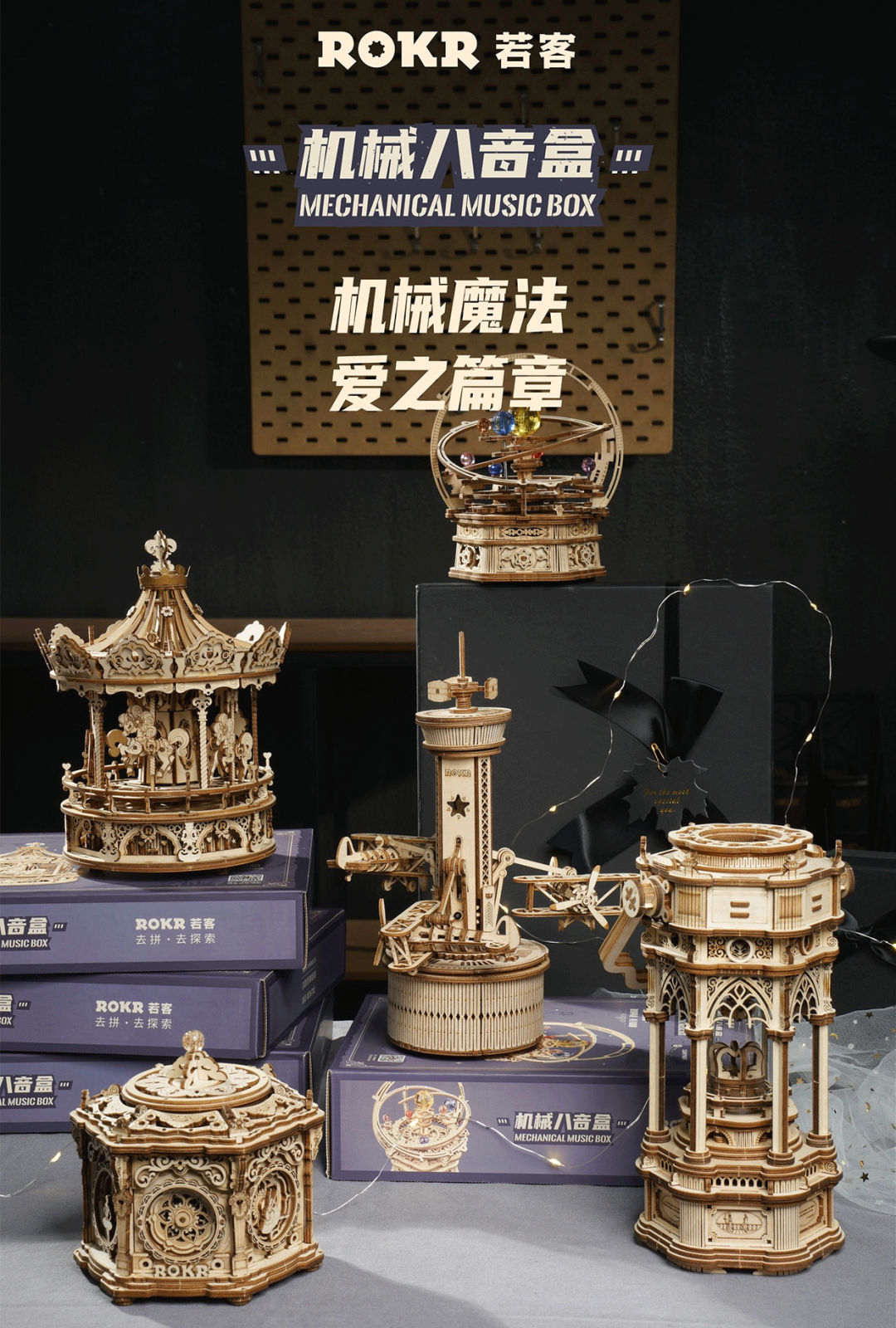 这便是机械传动模型潮玩品牌若客(ROKR)推出的机械八音盒,仅依靠一些木片就能完成梦幻场景的搭建,且有百听不厌、超级治愈的音色~