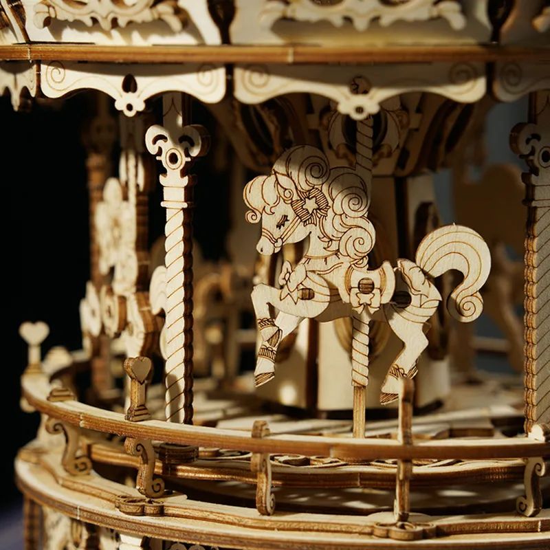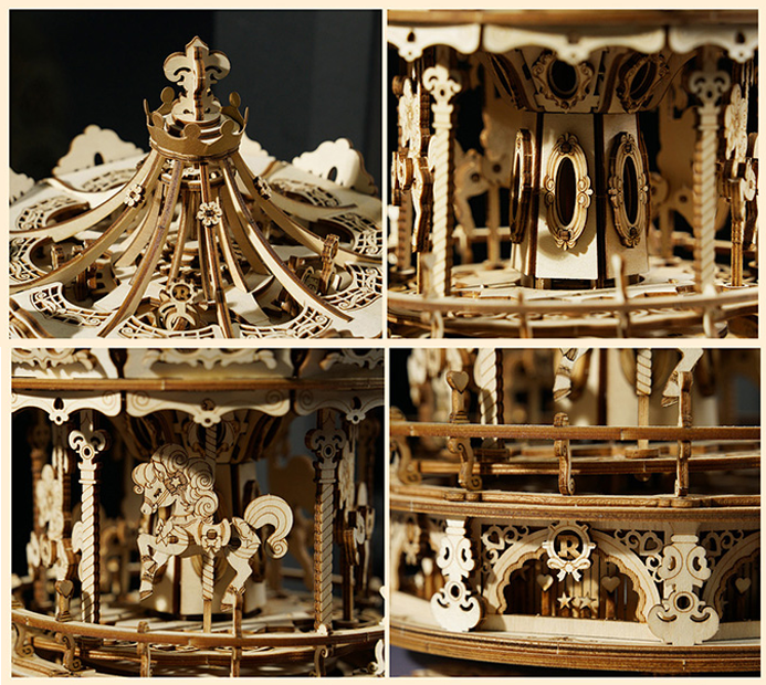 像一个工匠体验从无到有,经过几个小时专注的努力,亲眼看到旋转木马在自己的面前时,五匹灵动的小马在转动,还有叮咚的音乐,真的是超级有成就感,超级解压……