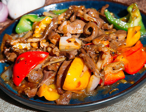 3、出锅时撒些蒜末翻炒几下即可,好吃又养心的菜肴就做好啦!