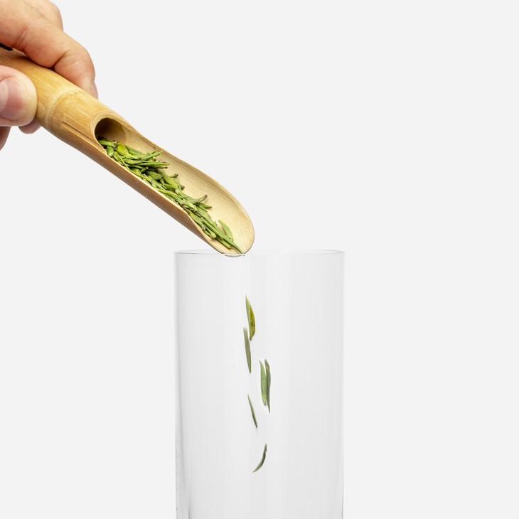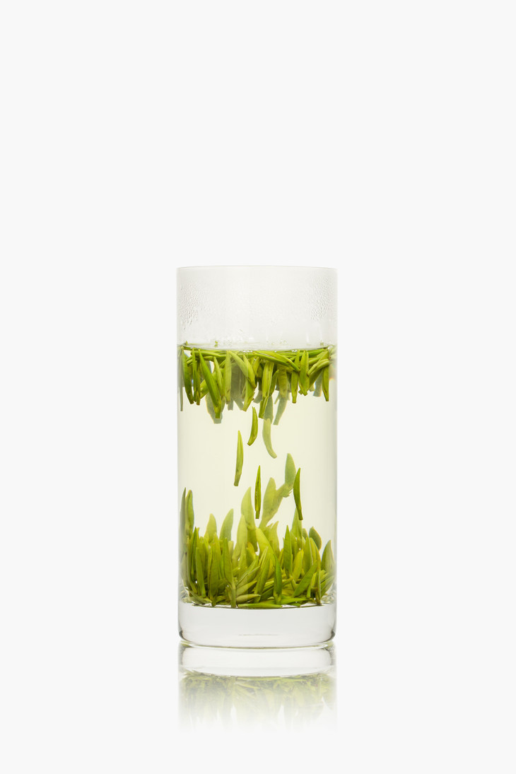 一月上新,比春天更早来,赶紧来品一品,这早春新茶鲜香。沸水温杯(冲泡器皿选择无盖玻璃杯为最佳,及方便观察茶叶优美外形,也不会闷坏茶芽)之后,投入3克左右干茶,投茶时还可以嗅到嫩栗般的茶香。