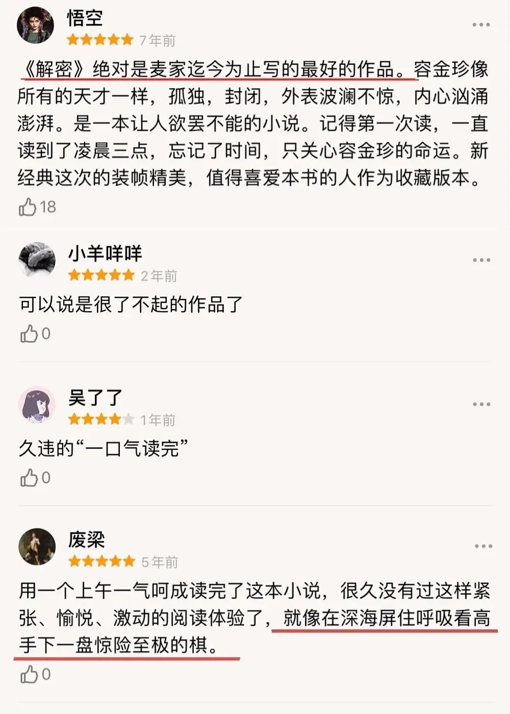 莫言直夸:杰出的人物,犹如鹤立鸡群,在人海中我们遇不到,在小说遇到了,是我们的幸运。 董卿在阅读时,则反复标记,在书上贴满标签,还动容地在节目里朗读过。