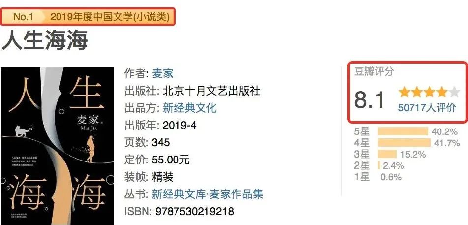 豆瓣年度受欢迎图书TOP10 中国文学(小说类)第*名 人民日报年度推荐书单