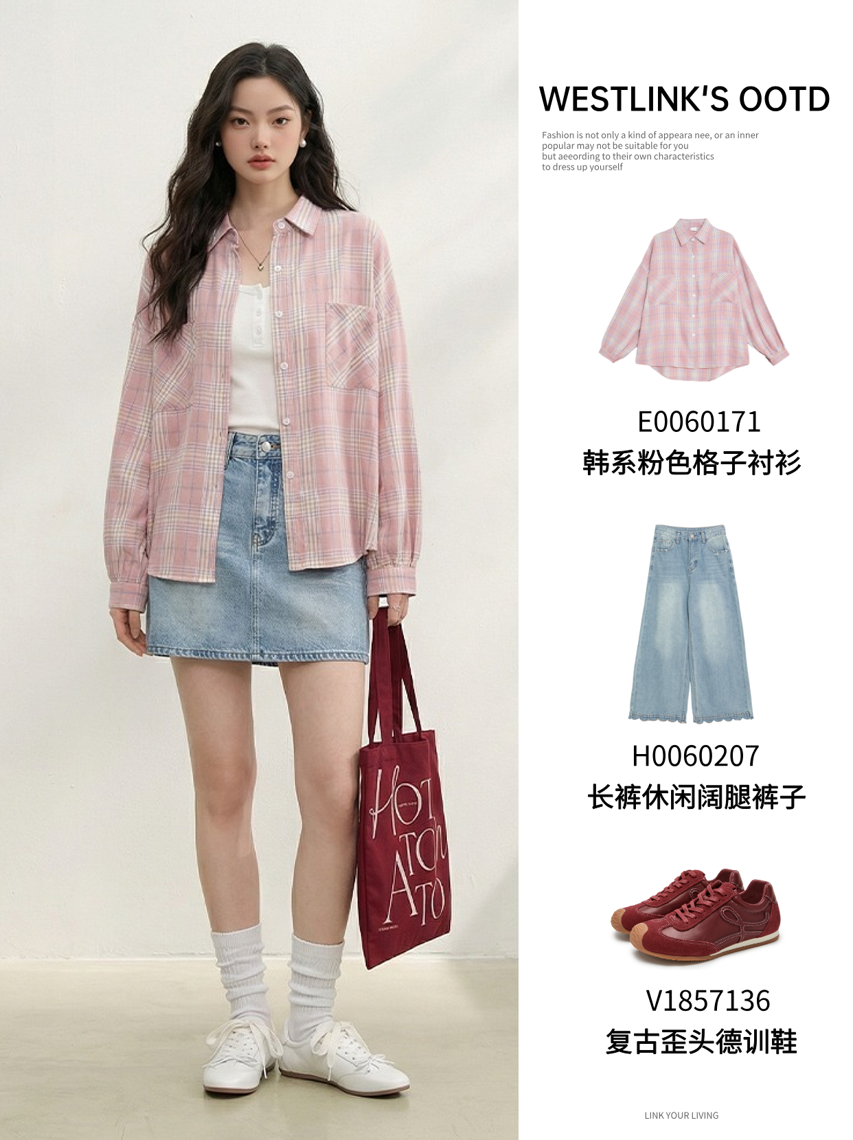 粉色格子外套🌸春日限定,宽松显瘦🌿自在无拘