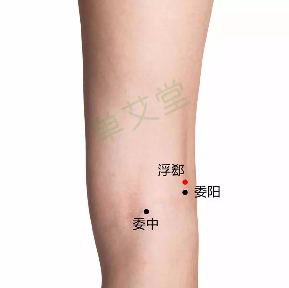委中穴很好找,就在我们腿部后面,膝盖窝横纹正中间。
