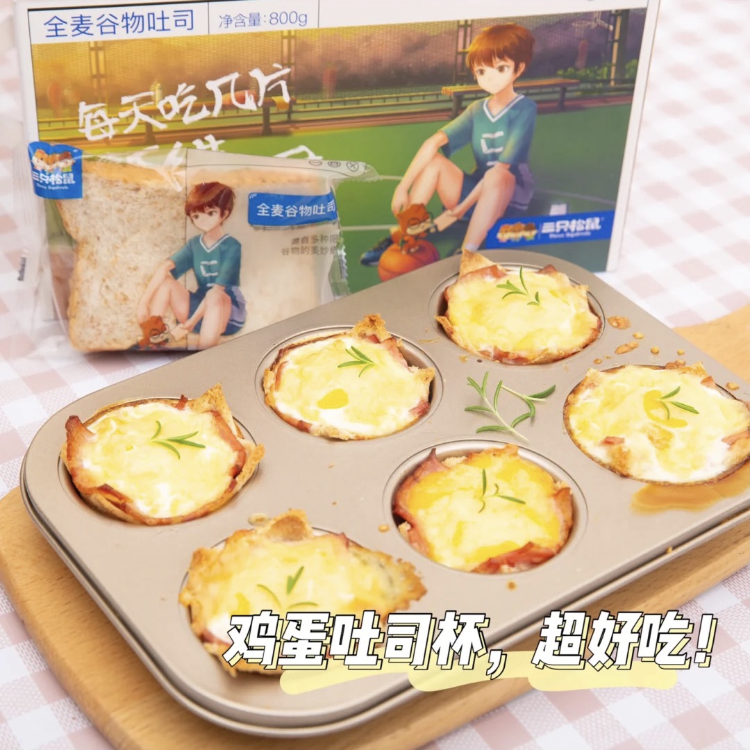 三只松鼠全麦吐司🍞、鸡蛋🥚、培根🥓、芝士🧀