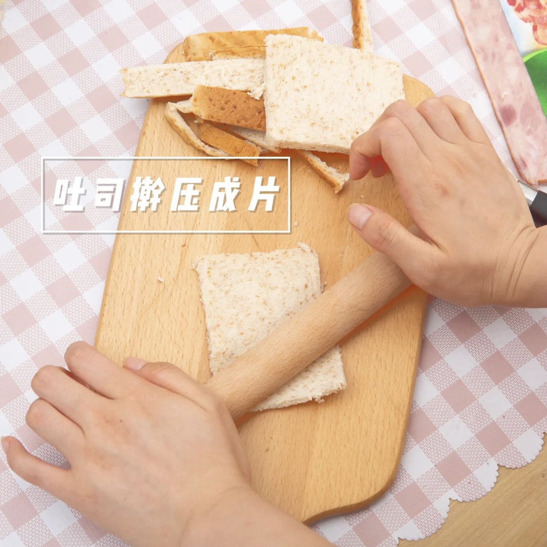 ▪吐司去边,擀压成片