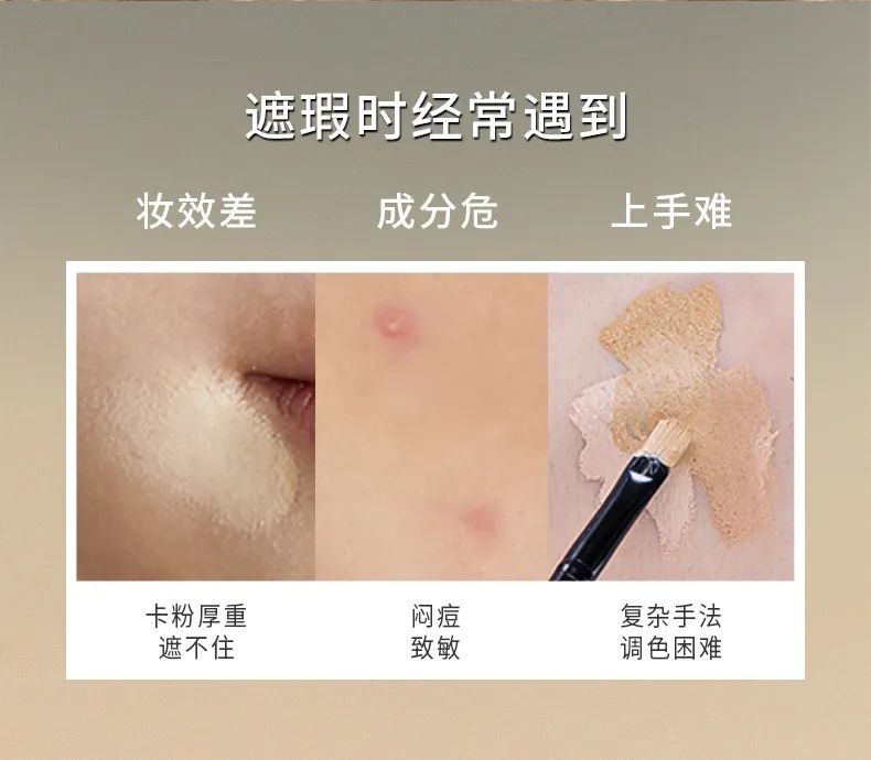 打好底之后,第二步就可以对局部的瑕疵进行一些遮盖啦。大家都知道,像痘痘这类瑕疵,本身就比较脆弱,市面上的遮瑕,要么成分不安全,要么太厚重,要么遮不住,很难放心的去遮住瑕疵。不仅如此,很多遮瑕产品颜色太复杂、手法也太复杂,痘敏肌遮瑕真的太难了。原本糖糖对遮瑕完全不抱希望的,最近拿到这款淂意遮瑕之后,只是简单戳了那么几下,居然遮住了我好几个陈年老痘印!而且对痘痘也很友好,完全不刺激,更不会闷脸!