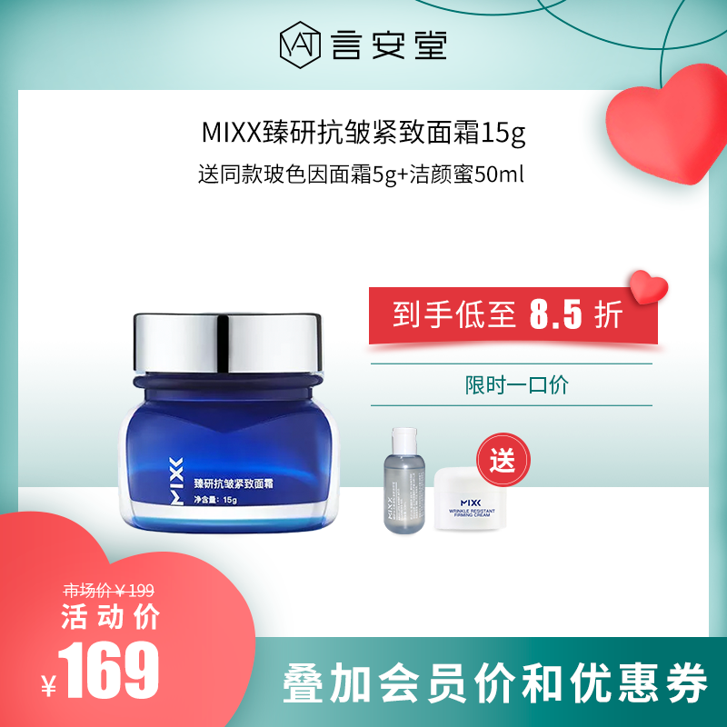⚠️本期,MIXX臻研抗皱紧致面霜,我们也争取到了优惠活动,15g中样活动价169元,送同款面霜5g+洁颜蜜50ml!