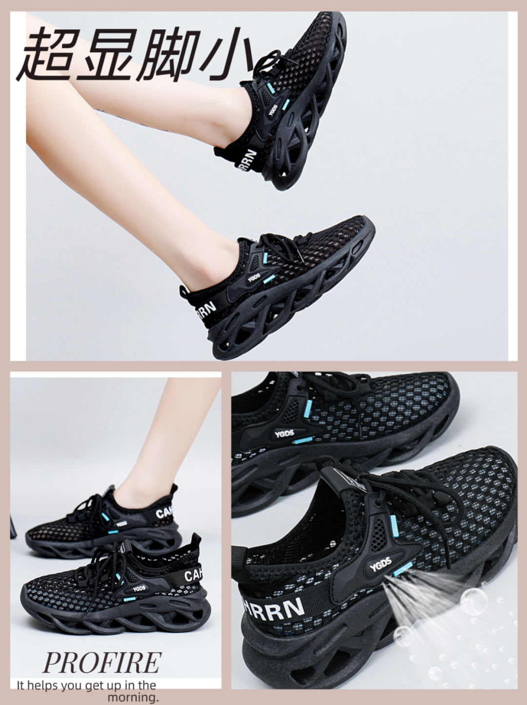 超多透气孔还有速干的效果,不怕下雨天,用吹风筒吹吹都能干!