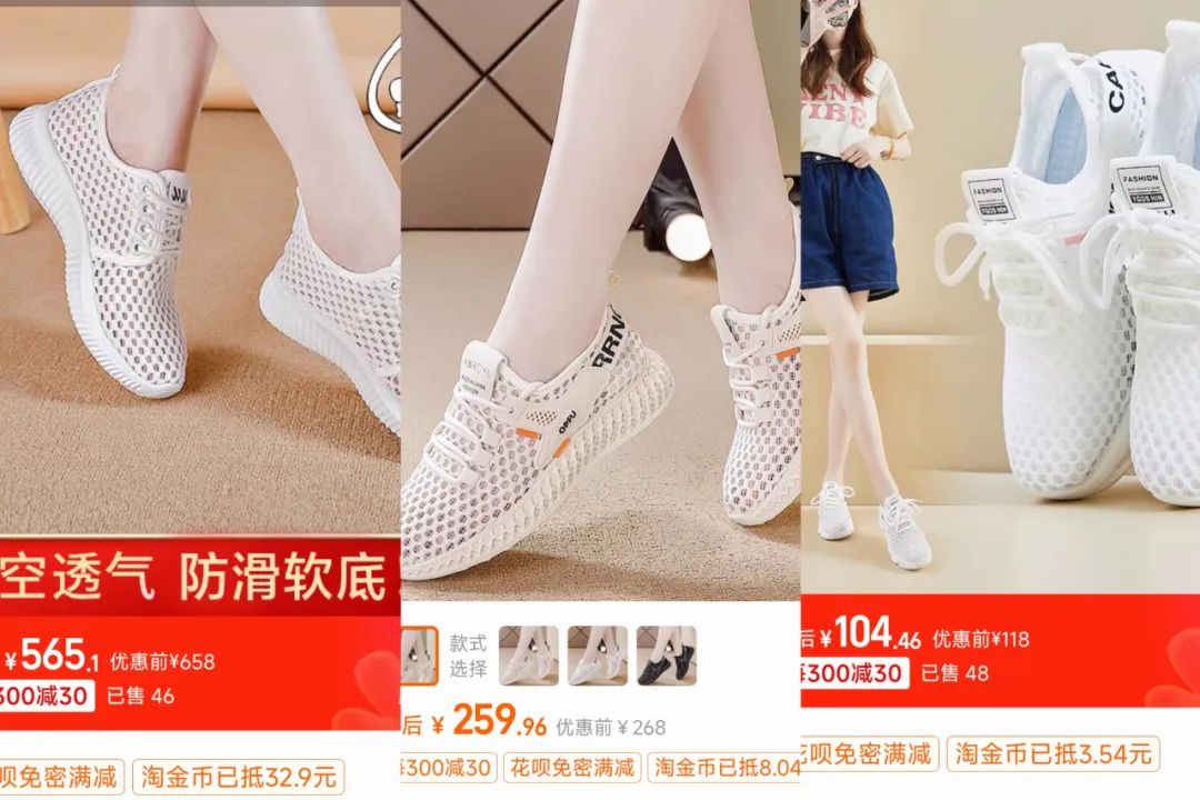 某宝类似款的飞织鞋动不动就3位数,259元的,565元的,哪怕外形很像同款的也得104元~