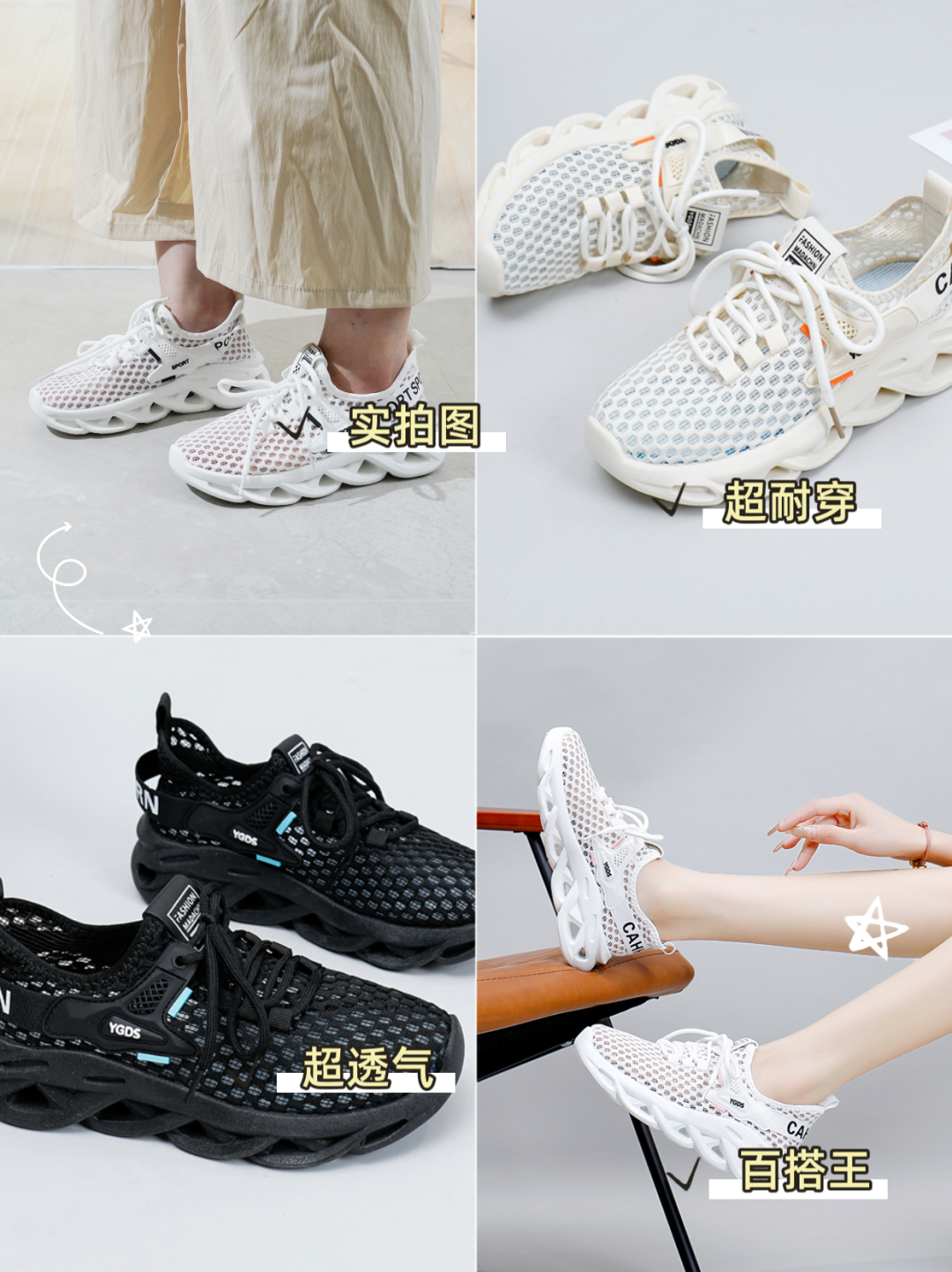 飞织无缝技术+大网眼透气,实现久穿无异味的效果!这简直是汗脚星人的挚爱呀!
