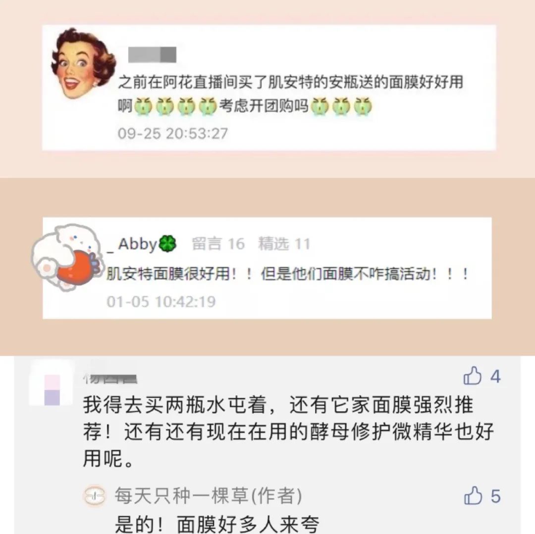 至少用过大半年,回购最多的十次不止,比如素肌内衣、企鹅的桂花米酒、肌安特的面膜......都是公认的“国货之光”,