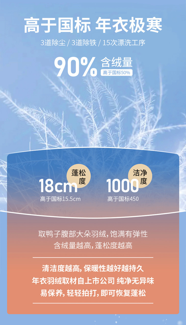 精选高密绒毛面料,防风防污,抗寒保暖,轻薄牢固耐磨,防止内胆钻绒,含绒量90%,保温效果好的同时非常轻盈,简约的纯色连帽设计,经典又百搭,上身效果真好看,实穿性非常高,穿多久都不会过时,母婴级安全标准,保暖又安全。