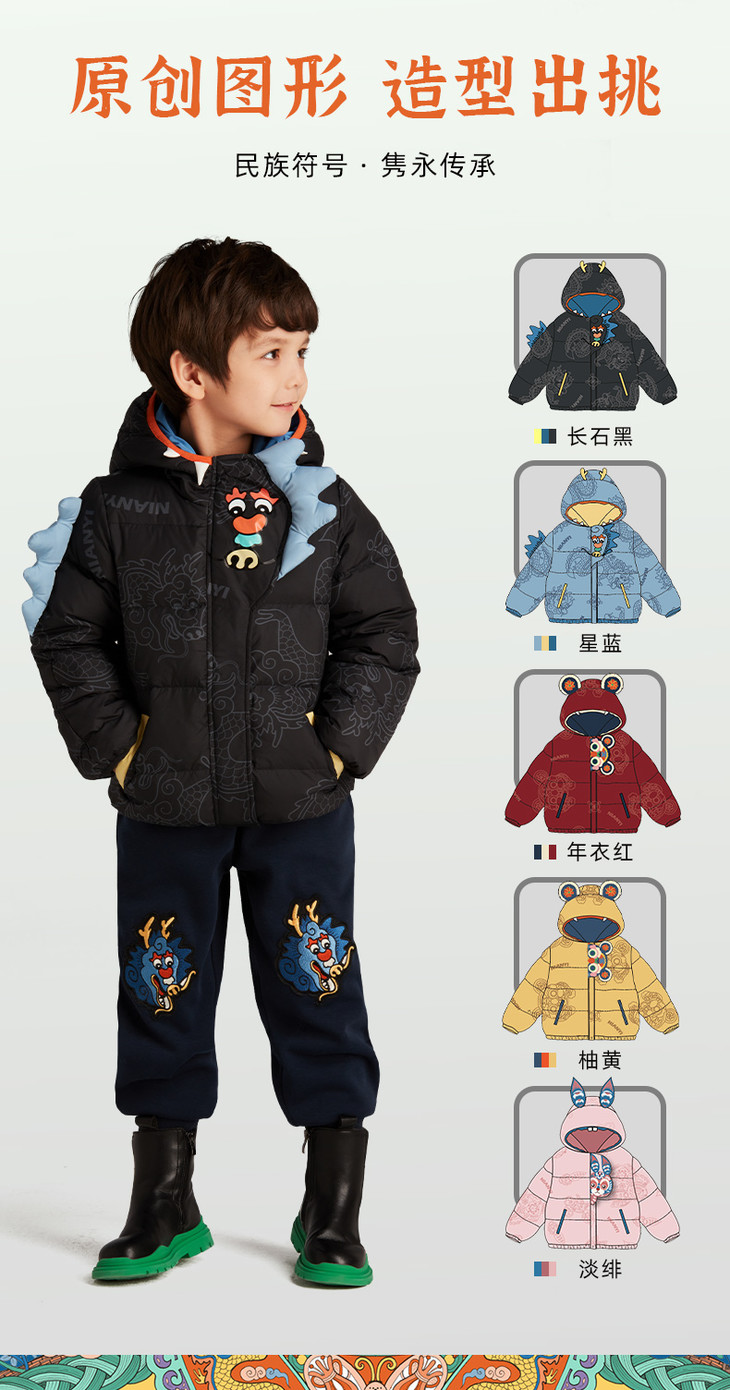 这一款羽绒服比较适合男孩子,女孩子的当然也有呀,都是国潮风格、可可爱爱~穿出去上学、遛弯,不容易跟别的小朋友撞衫,氛围感也满满滴!