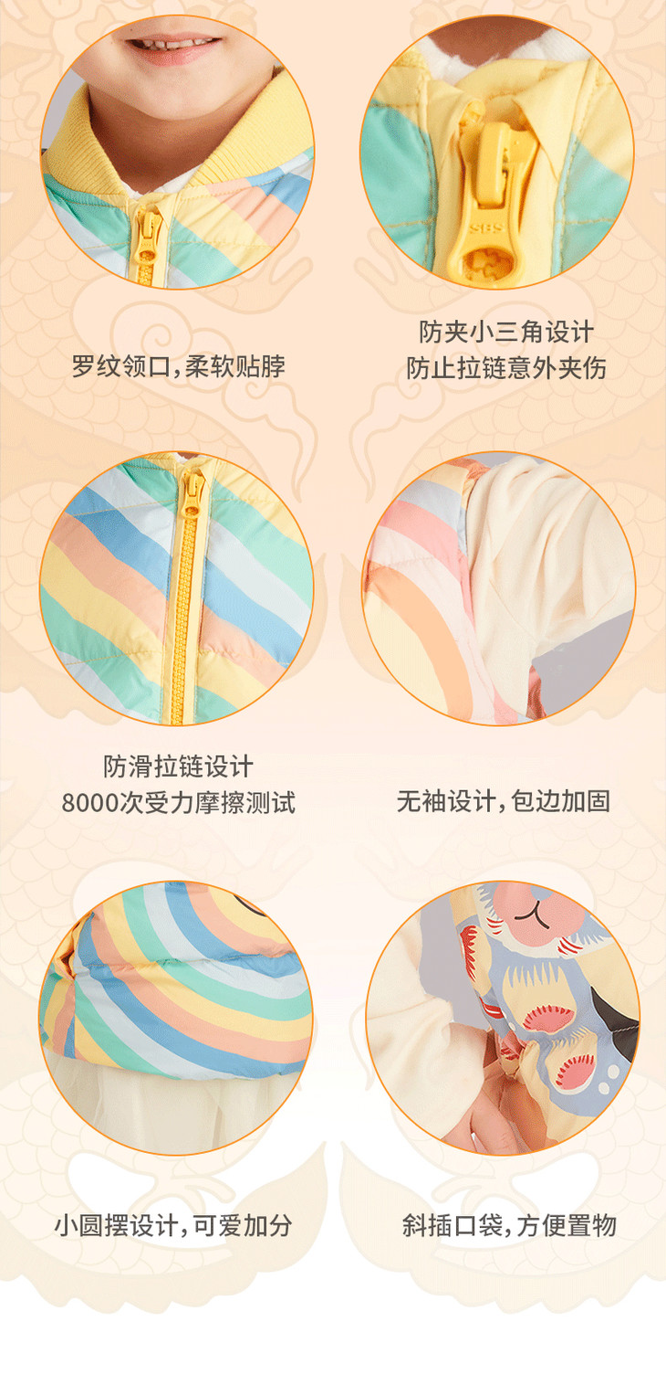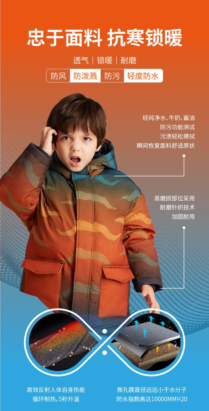 轻薄保暖,穿上不会闷汗,男女童都适合,宽松的版型,孩子穿上保暖舒适,经典的款式,超温暖的颜色~绝对是宝宝喜欢的类型。