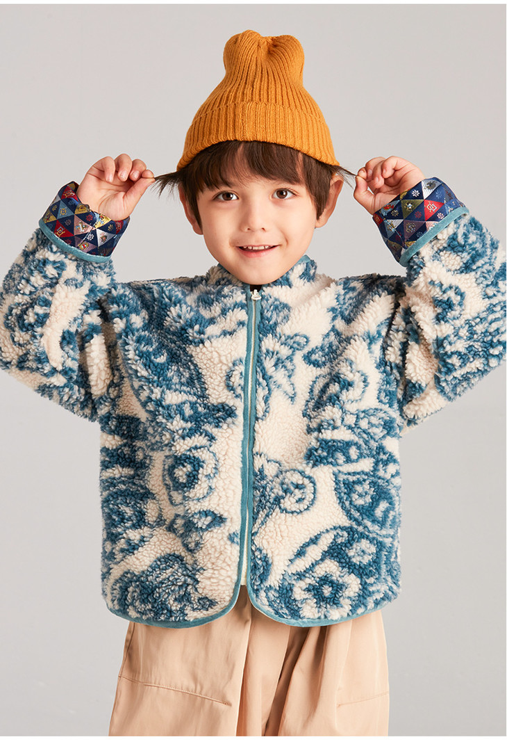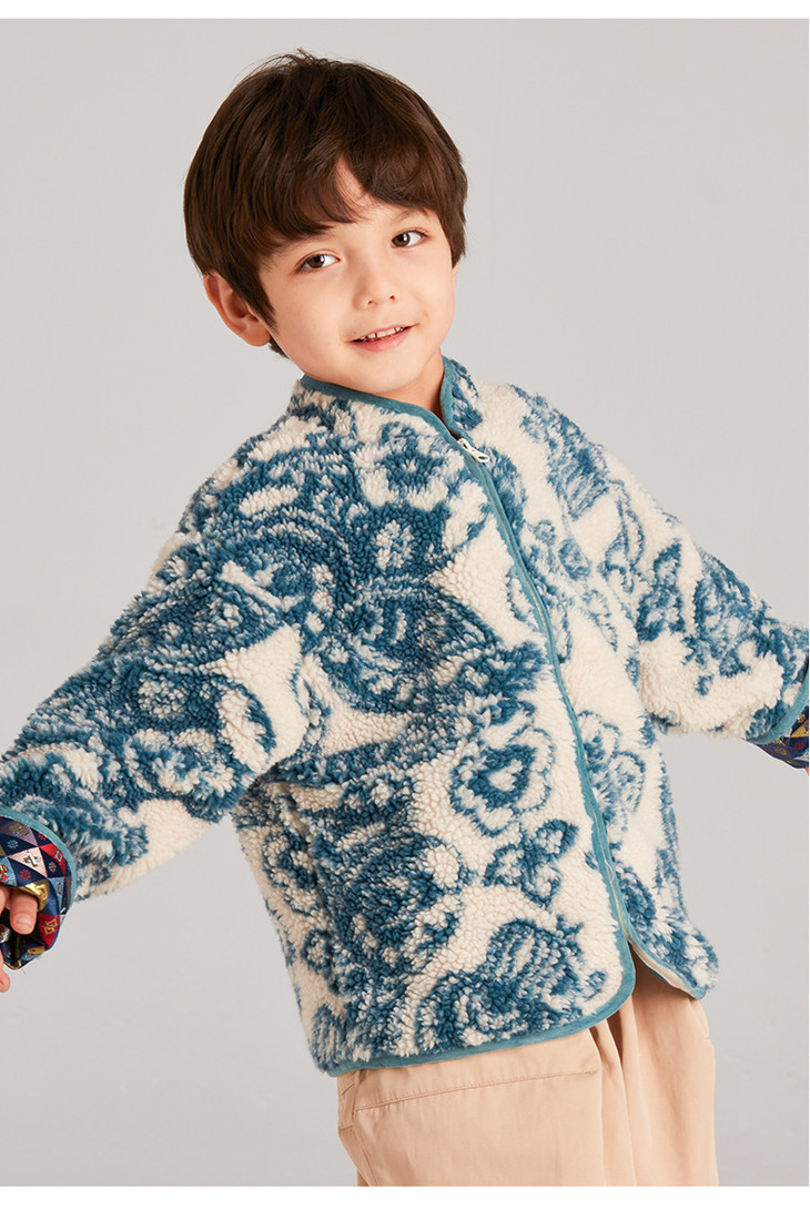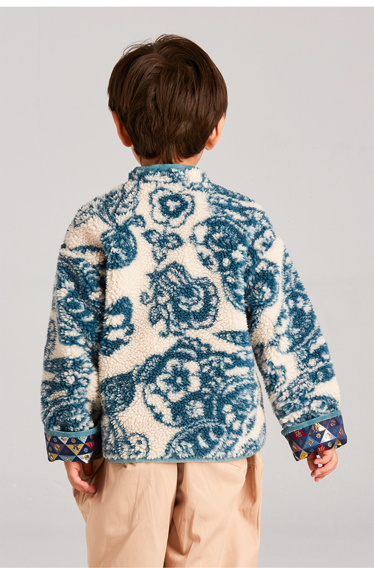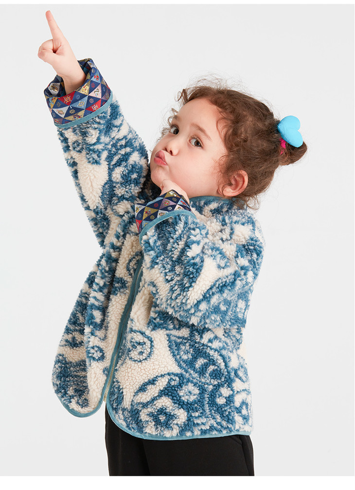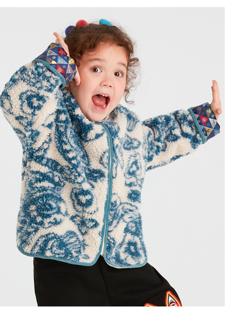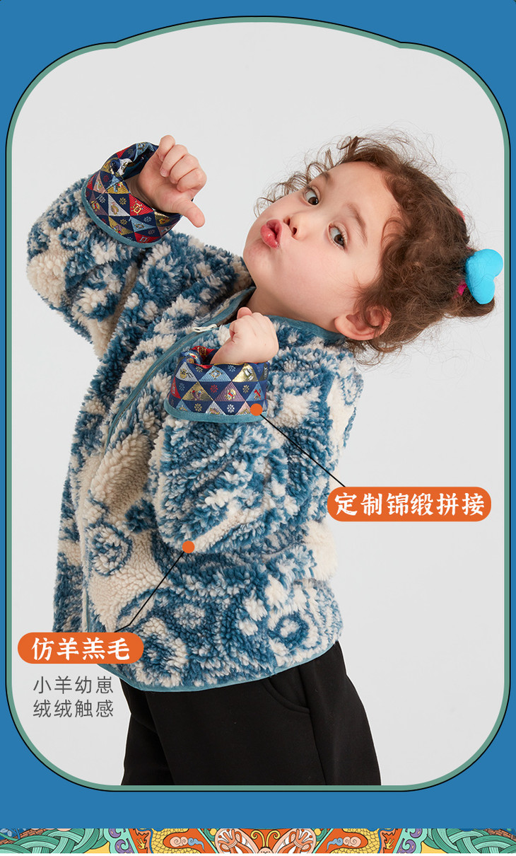 选用摇粒绒的材质,表面摇粒蓬松密集,摸起来绒感十足,保暖又舒适,而且不易掉毛、起球,耐穿耐洗,十分好打理,定制棉缎拼接,很显时尚潮流,民家古老图腾设计,童趣满满,十分可爱。