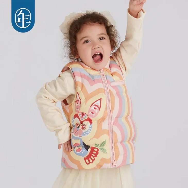 2022冬新款好运兔佑男童羽绒马甲,原创好运兔佑图案设计,采取传统剪纸的风格进行图案的创作,将其他中式传统元素,白菜寓意-百财,枫叶-寓意鸿运吉祥,融入其中,日常又不失氛围感。