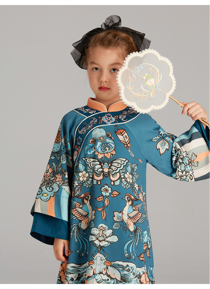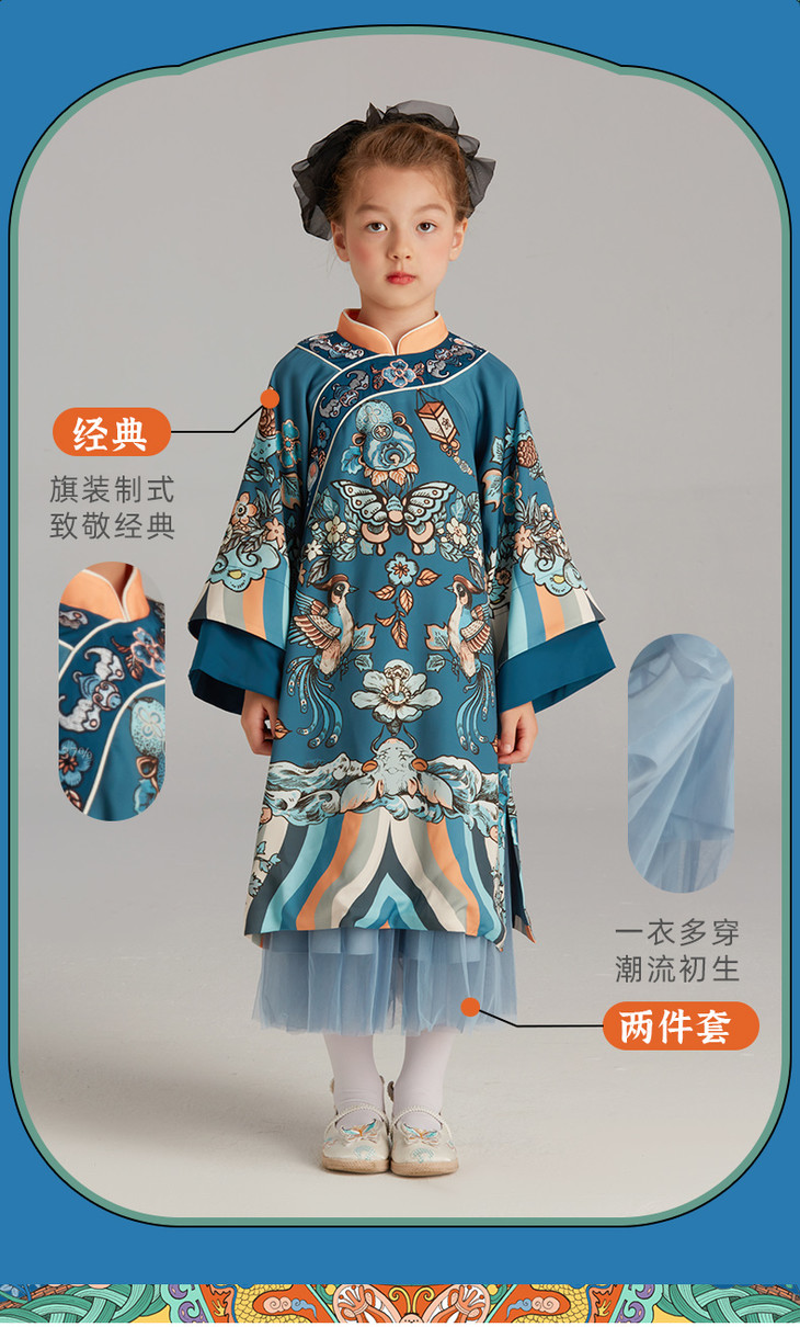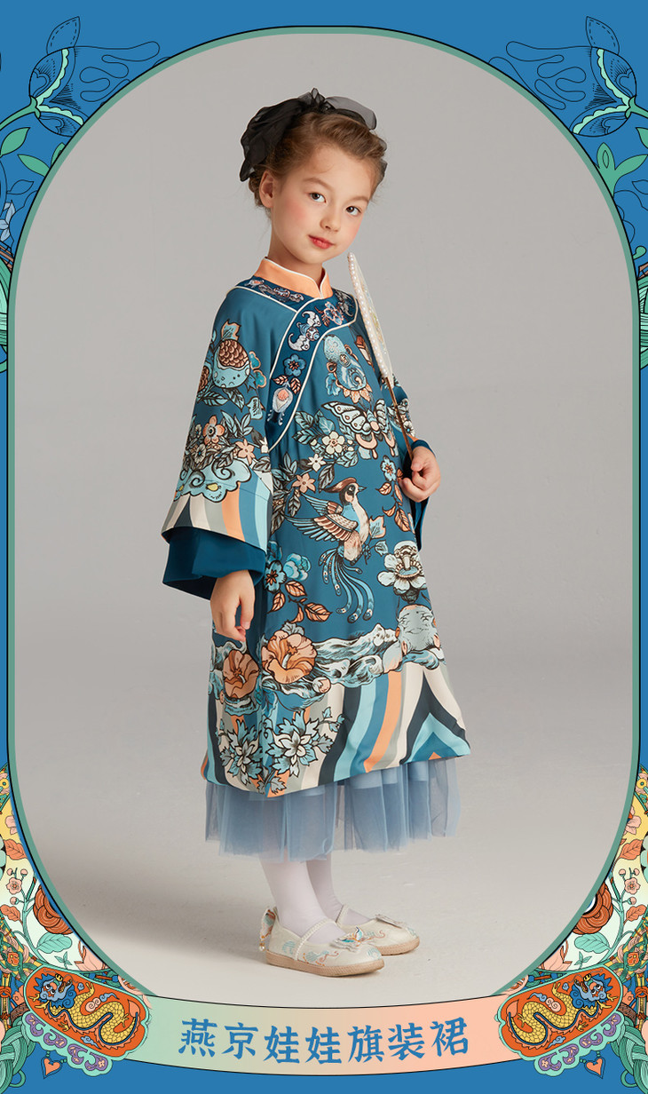 一件穿上秒变京味娃娃的旗装来咯,2022秋冬新款燕京娃娃女童旗装裙,改良旗装版型,连衣裙款式,分体式裙装,既是裙体局部,也可独立,后开拉链,方便穿脱,对儿童非常友善,即穿即走,潮流时尚,旗装制式,致敬经典。