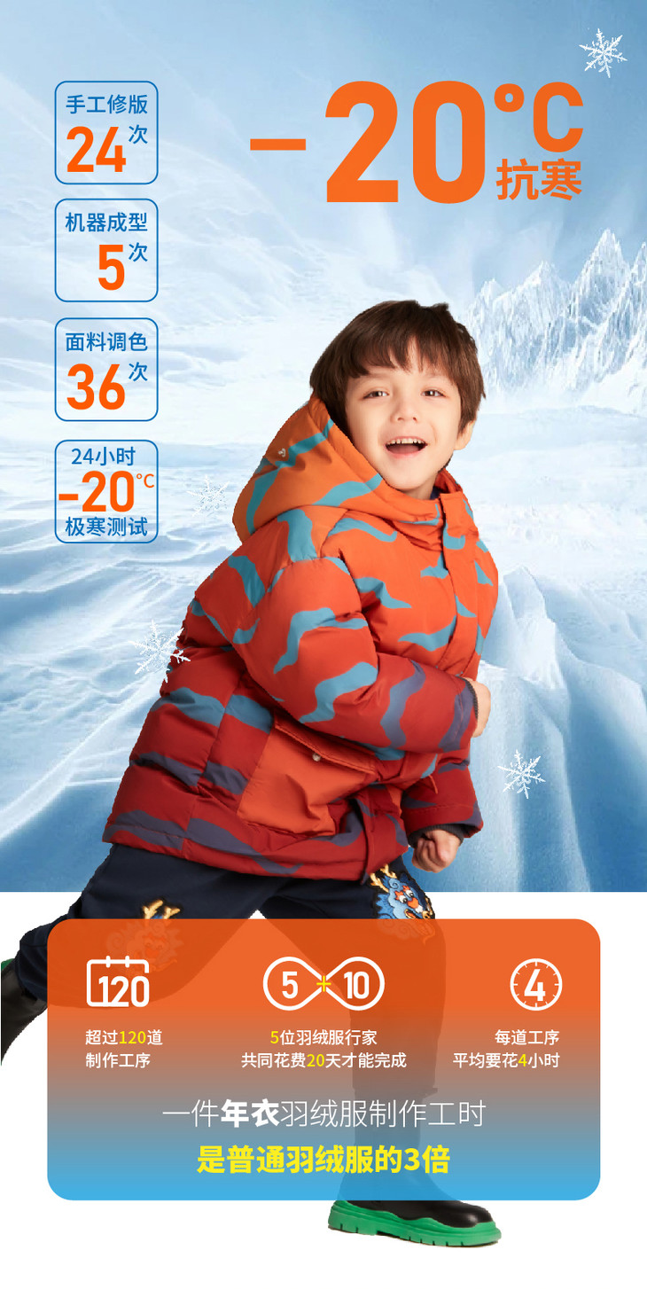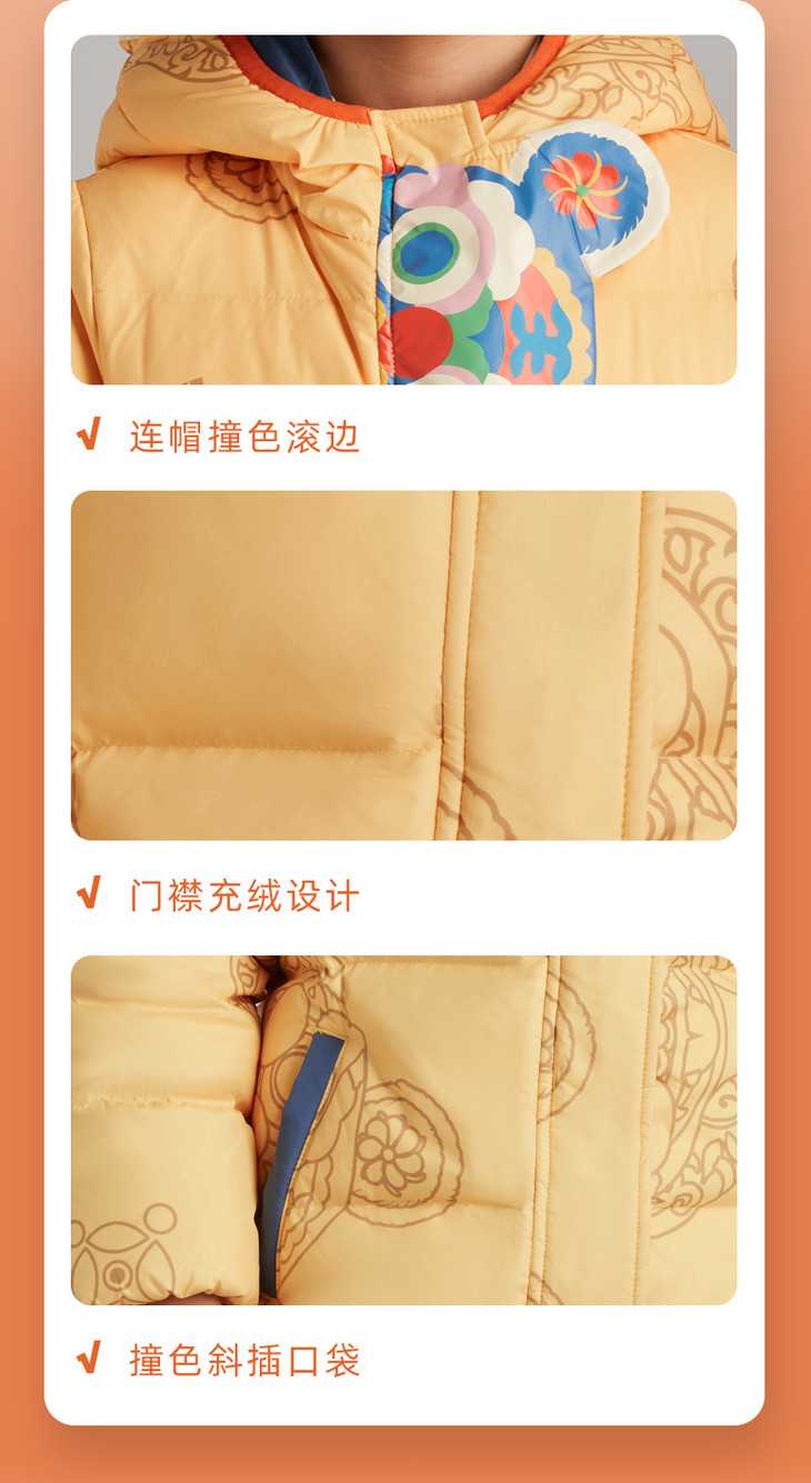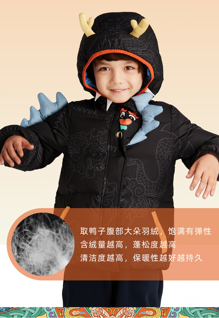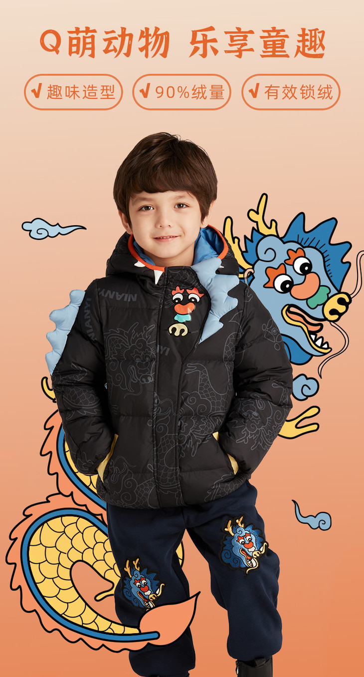 羽绒服算是宝宝衣服里的大件了,年年都得买新的,年衣把孩子们过冬必备的羽绒服,都设计的这么好看,简直太惊喜!内里填充90%白鸭绒,温暖在线。