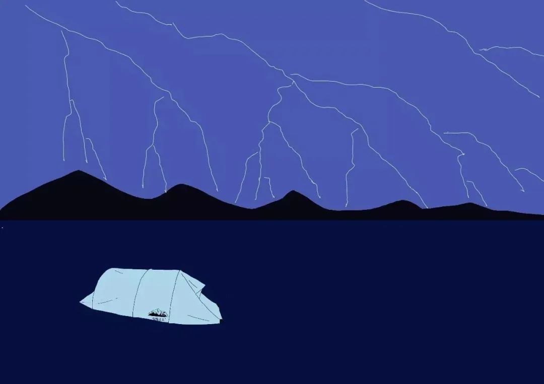 雷电来临时,在水边停留也是一种作死行为,因为水面暴露而广阔,水具有良好的导电性,被闪电击中很容易殃及登山者。