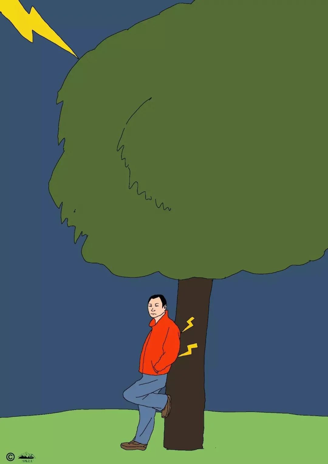 大树相对于荒野是一个制高点,因此闪电很容易击中大树。登山者在树底或靠近树干的位置,都极易受到伤害。