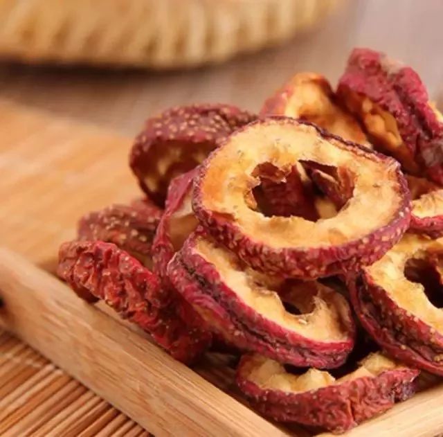 挑选干山楂片皮色红艳,肉色嫩黄者好,尝酸味浓而纯正,肉质柔糯的质好;