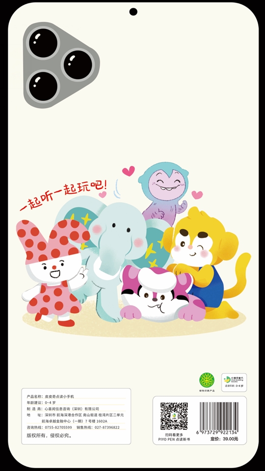 它看上去就像个仿真手机,这也是为了尽量让孩子更晚点去接触声光电真实手机……
