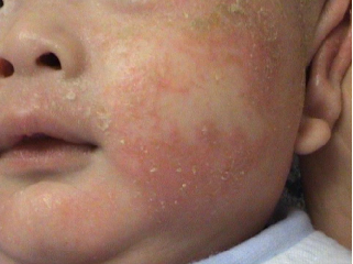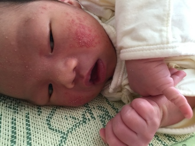 新生儿痤疮和湿疹有时也难以区分,但临床仔细地观察可以发现两者的差异。新生儿痤疮一般表现在以面部为主的、沿毛囊分布的红斑、丘疹、水疱、脓疱类的表现。一般较少有渗出或局部的抠抓刺激的临床表现。湿疹则表现为头皮、面部片状的红斑、皮肤的肿胀、皮肤上出现渗出、脓疱、结痂等此类的情况。