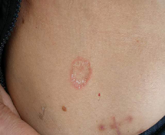 第二个临床表现上,体癣表现为一开始的红色的斑丘疹,很快皮疹面积增大,中间皮疹消退,边界出现一些新的丘疹,甚至是少量的脱屑,伴有轻度的瘙痒或者没有瘙痒的感觉,可单发也可以多发。湿疹它是对称反复发作,表现为鲜红色斑片表面上丘疱疹、水疱,有渗出倾向,一般对称发作,瘙痒剧烈。