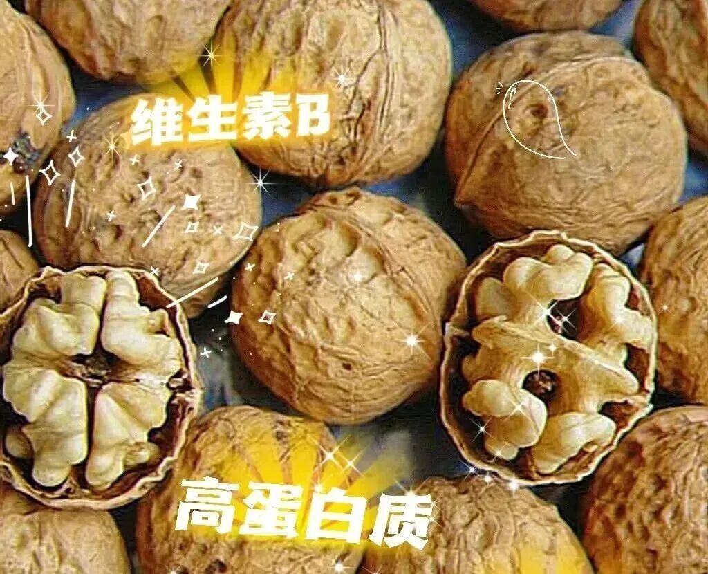 收获的核桃果,还要经过精挑细选,留下大小均匀、肉质饱满的,自然晾晒后烘干,果壳薄如纸,轻轻一捏就“张嘴”了,不需要核桃夹子、开口器,哪怕小朋友都能轻轻松松剥开~