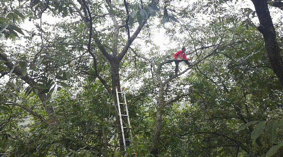 都是今年新果,而且为了避免机器粗暴采收导致的果实损伤、变质,核桃成熟后由人工采摘。只能靠身手矫健的汉子们爬上树端,手持竹竿或站立,或倚坐在悬起的树枝上,既要安全,又要准确无误的敲下核桃果子,丰收的同时也伴随着高风险。