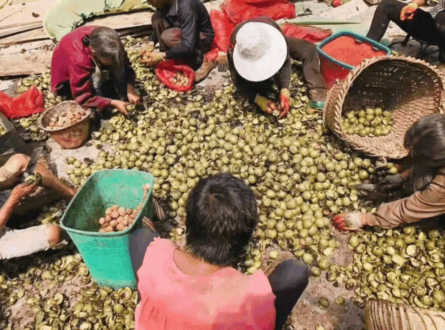 手工剥核桃皮也不是件容易的事,需要力气和巧劲相结合,一个人一个小时頂多也就能去掉20斤核桃的青皮。可以说,每一颗核桃,都来之不易。