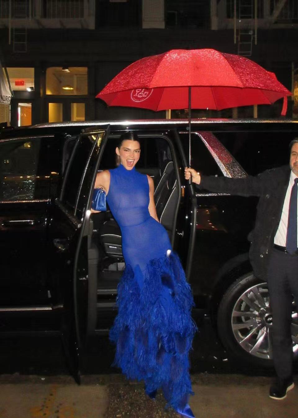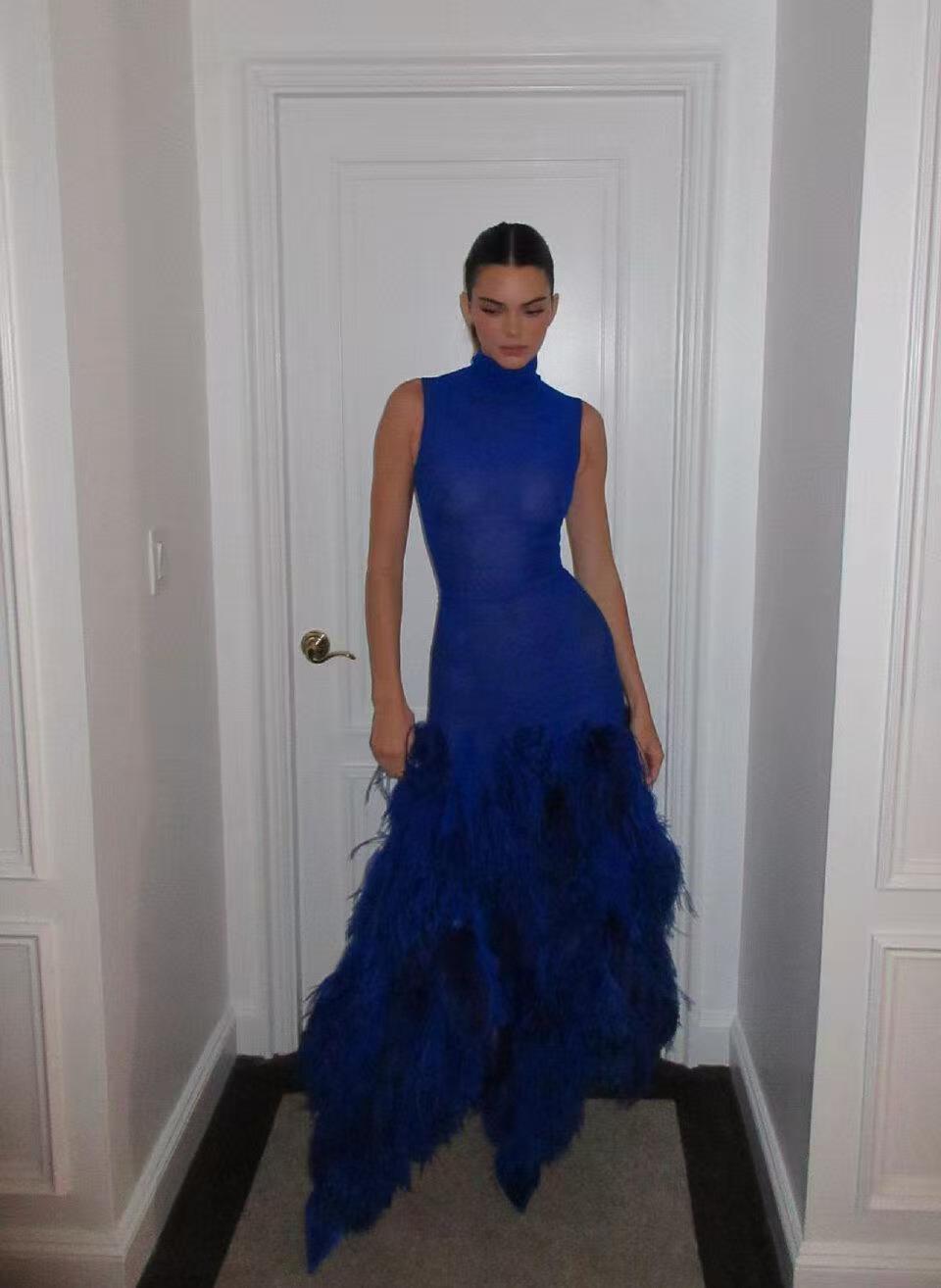 再来看一下卡戴珊家族的肯豆。这位名模穿什么火什么。他也是把克莱因蓝融入在各种场合当中,无论是重要的红毯、晚宴,还是日常的生活,看得出来他都很喜欢克莱因的这个颜色