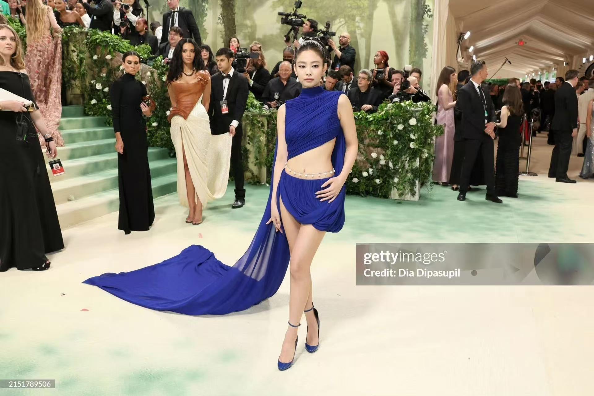 这是jennie 2024年 在Met Gala里面的穿搭 并且被评为了最佳造型
