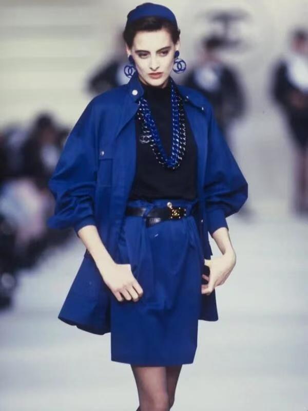 1990年,香奈儿已经用上了克莱因蓝这个颜色,大家可以看一下,它里面的搭配