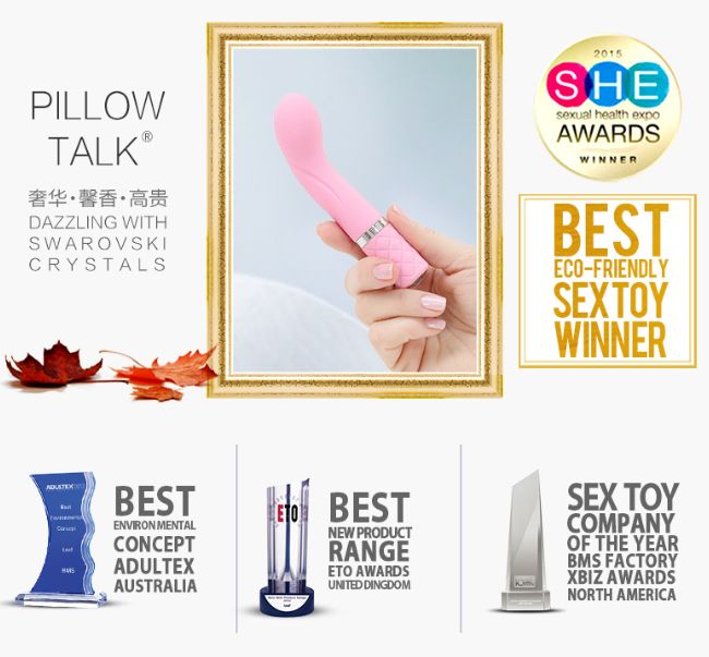 除了上述优点外,Pillow talk的防水性和经过了FDA认证的食用级硅胶都让它变得更有内涵更迷人,它还获得了多项国际大奖:
