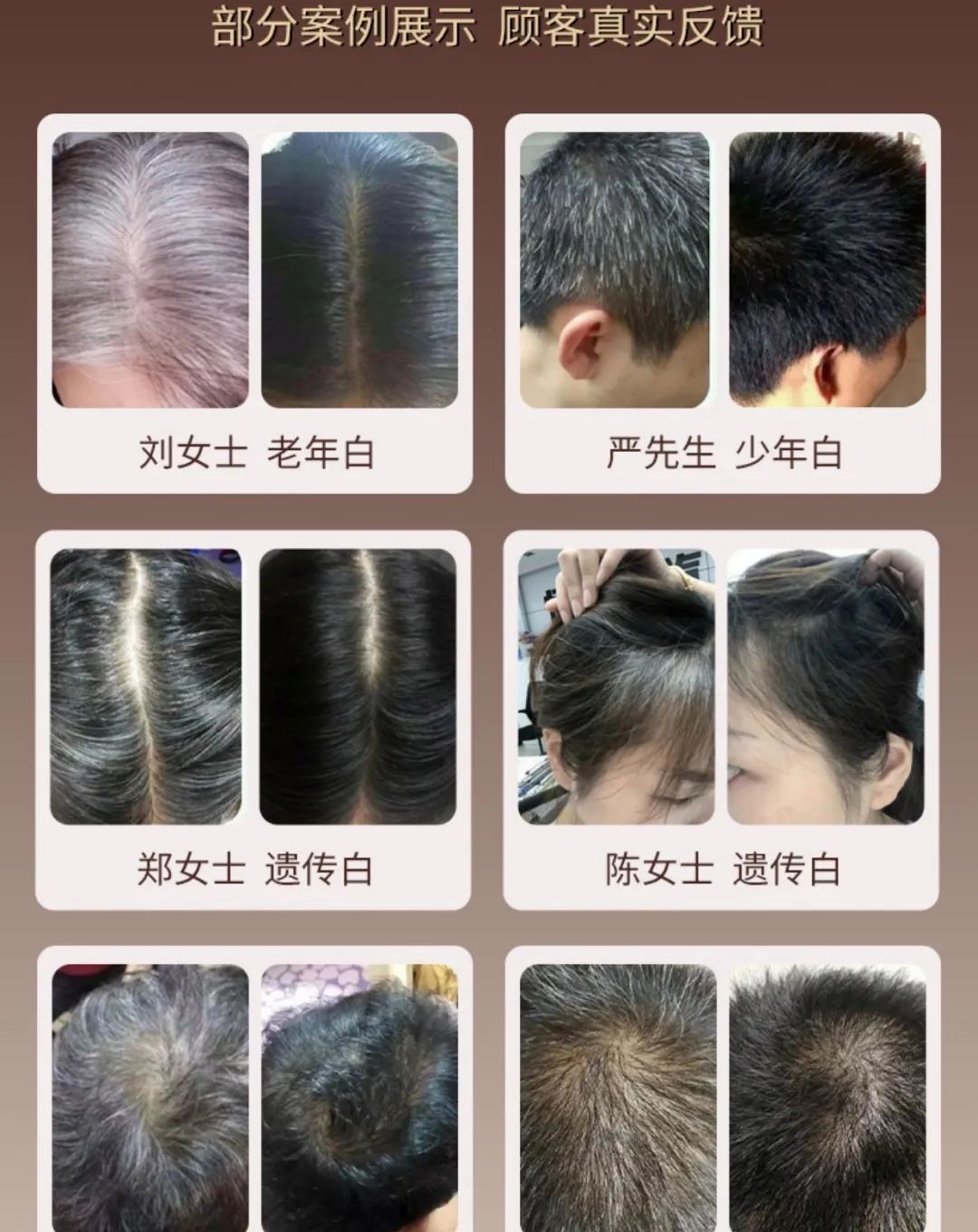 而且复黑片采用内服,通过补肾缓解脱发、白发问题,不是市面上的刺激性洗发露、药水,所以也更加的安全,不会刺激头皮。