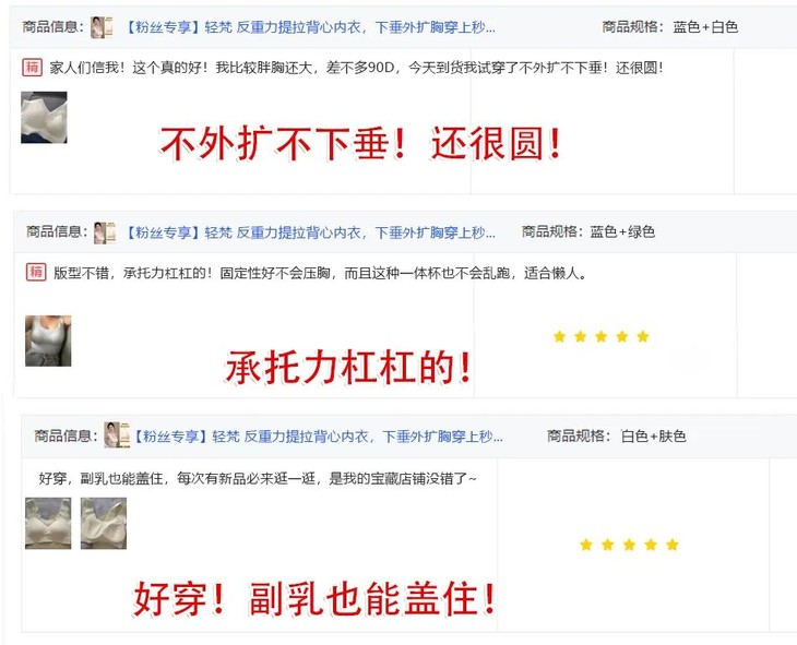 正是因为有了这些BUG加持,所以模特同款内衣穿在自己身上,要么是大胸托不住露出副乳,要么就是小胸空杯还没型…
