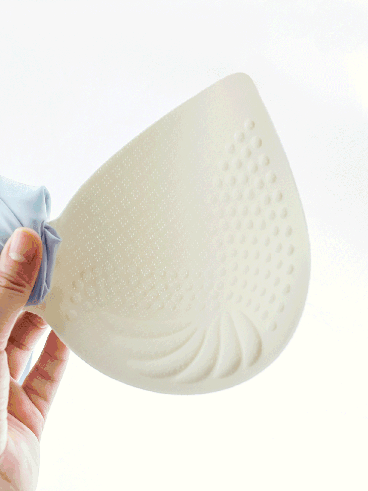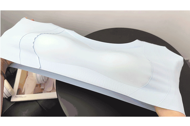 所以你看轻梵这款的胸垫,一整个大升级,是上薄下厚的纵向立体3D水滴形。