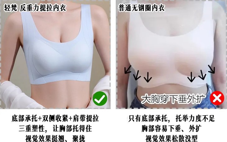 穿普通的无钢圈内衣只要稍微一动,那些失控的胸肉就往下滑…