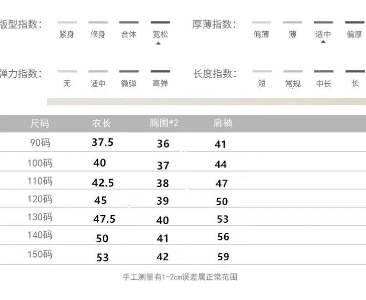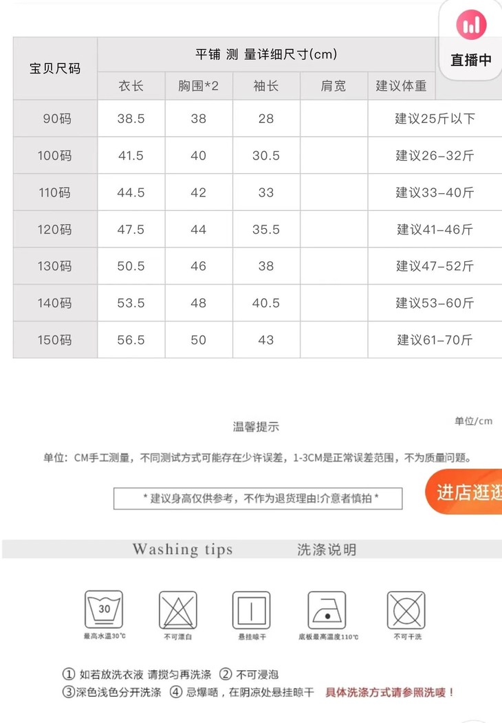 90-150的尺码,尺码齐全↓,家人们都可以找到合适宝宝的尺码~