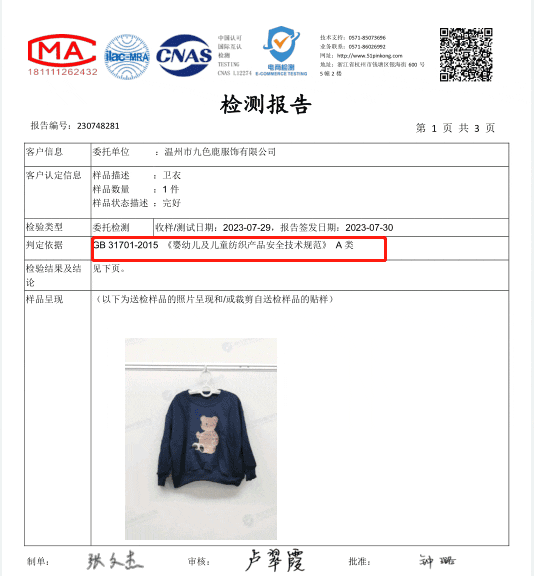 经过严格检测,专业质检报告,妈妈可以放心给孩子穿。