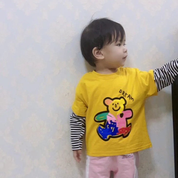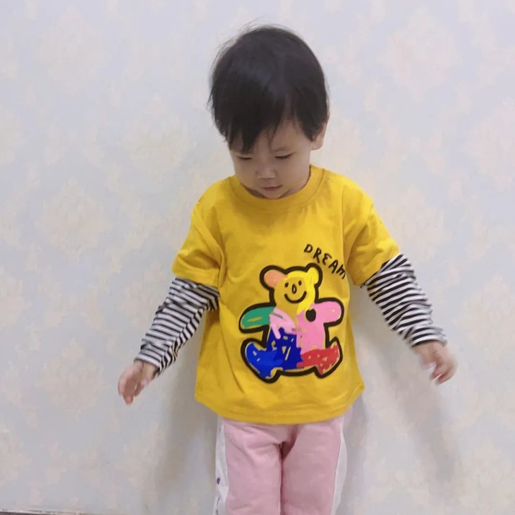 期盼你的宝贝穿上这件假两件长T时,不只是温暖,还有喜悦,更是幸运,自心底而生,由内而外。