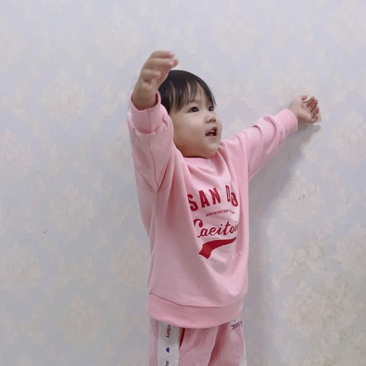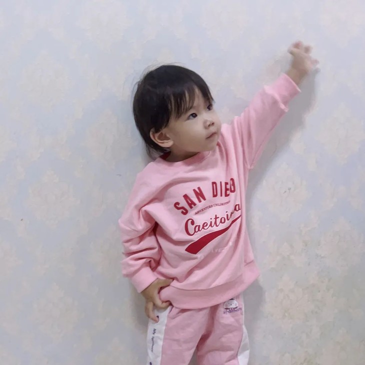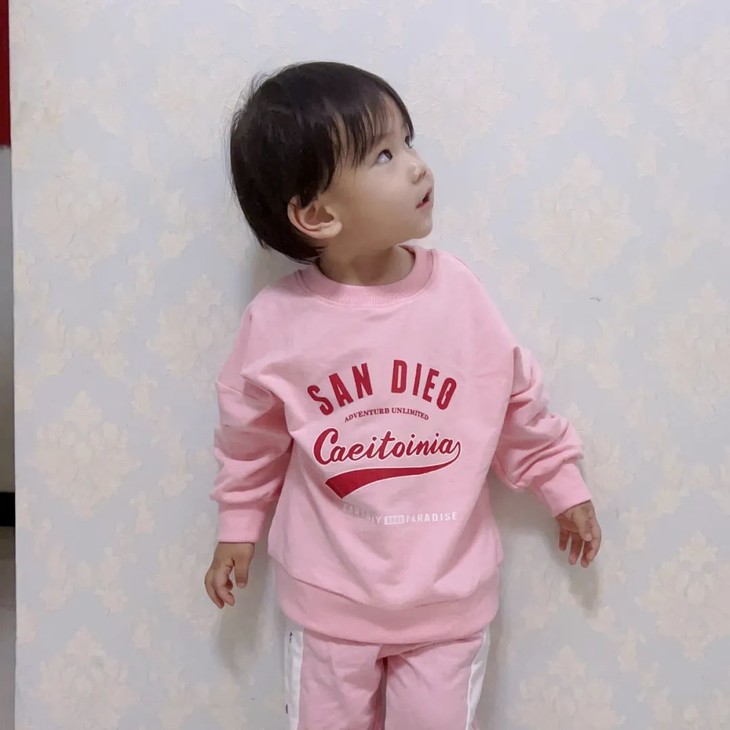 宽松的廓形,上身特别时髦,关键是孩子体育课运动很方便,所以上学穿正正好。