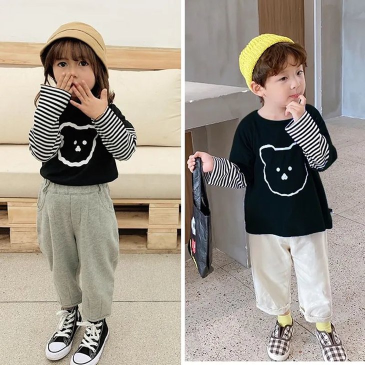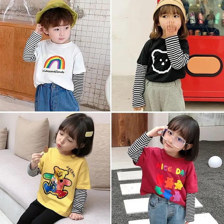 儿童假两件长T,设计感十足又不用费心搭配,一件衣服穿出两件效果。时尚萌娃必备潮衣!