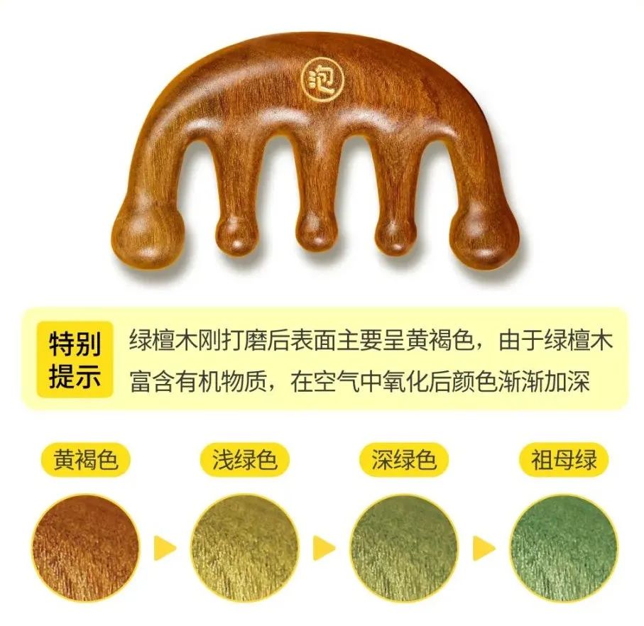 今天就给大家推荐一款全身可用的绿檀木刮刮梳,五爪宽齿设计,不止可以用来梳头,还可以用来疏通全身经络。