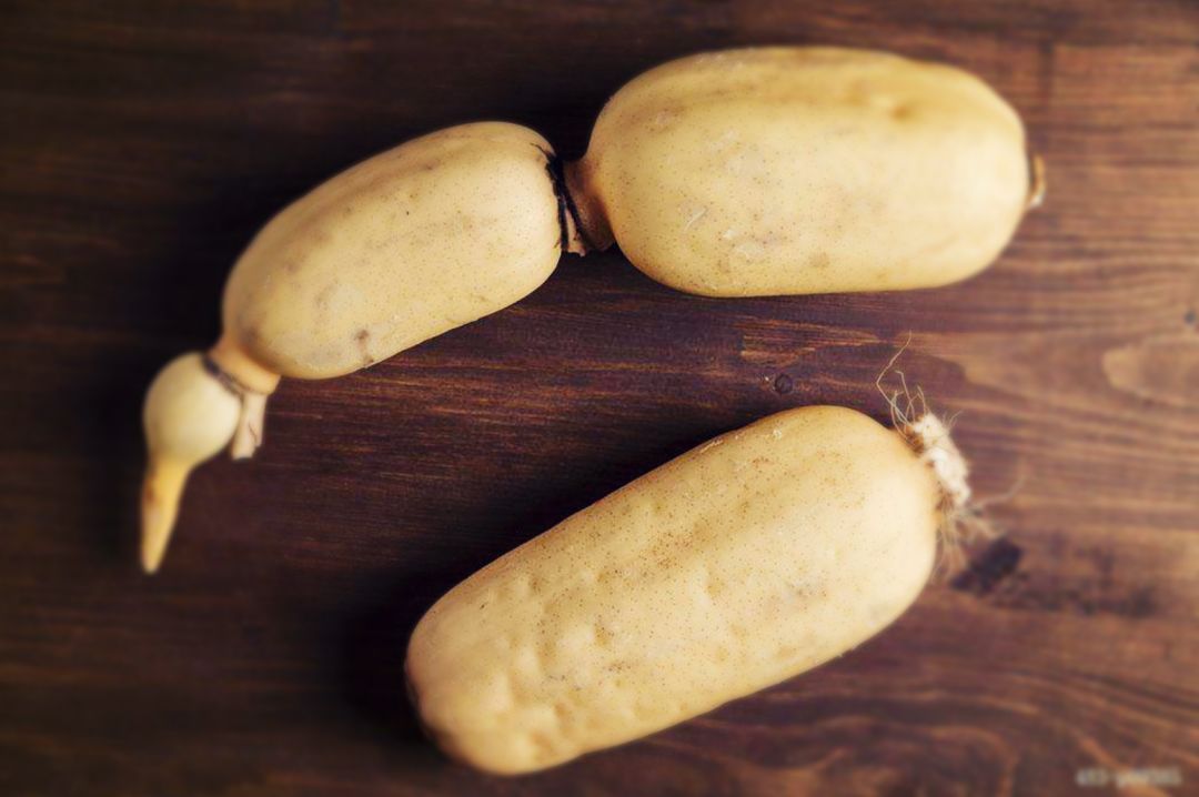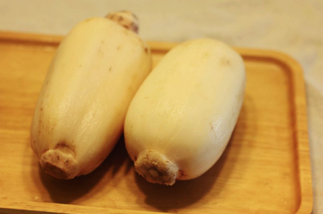 白藕也叫九孔藕,形体细长,边皮偏白色,这种藕补虚效果好,适合煲汤;